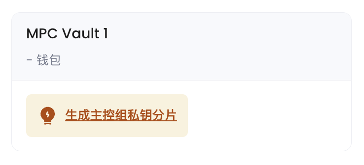 在 Cobo Portal 上, 管理员将通过点击 MPC 钱包 > [vault-name] > 生成主控组私钥分片来完成主控组的创建.