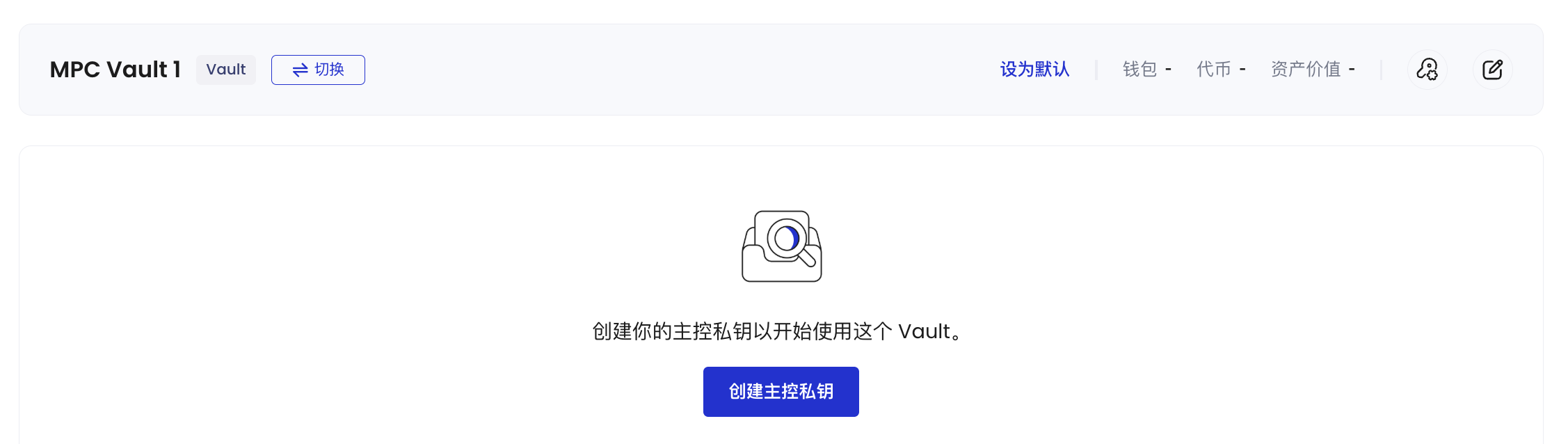 在 Cobo Portal 上, 管理员通过点击 MPC 钱包,选择 Vault,点击创建主控私钥,发起主控私钥的创建.
