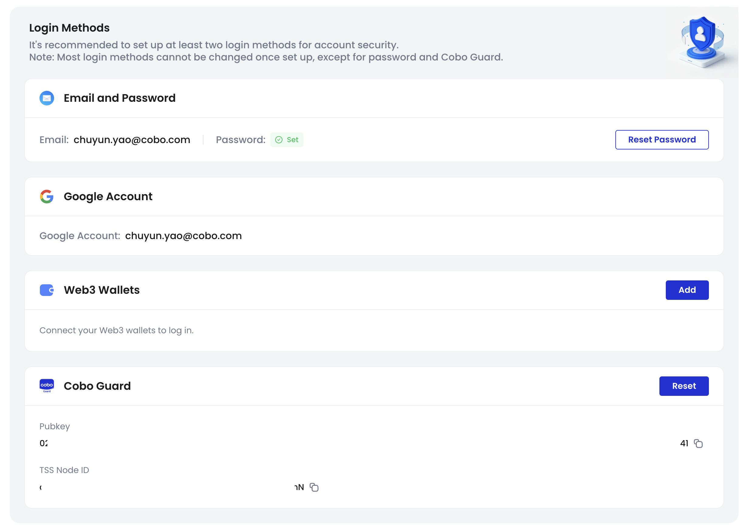 - For more information on how to reset Cobo Guard, see Reset Cobo Guard.