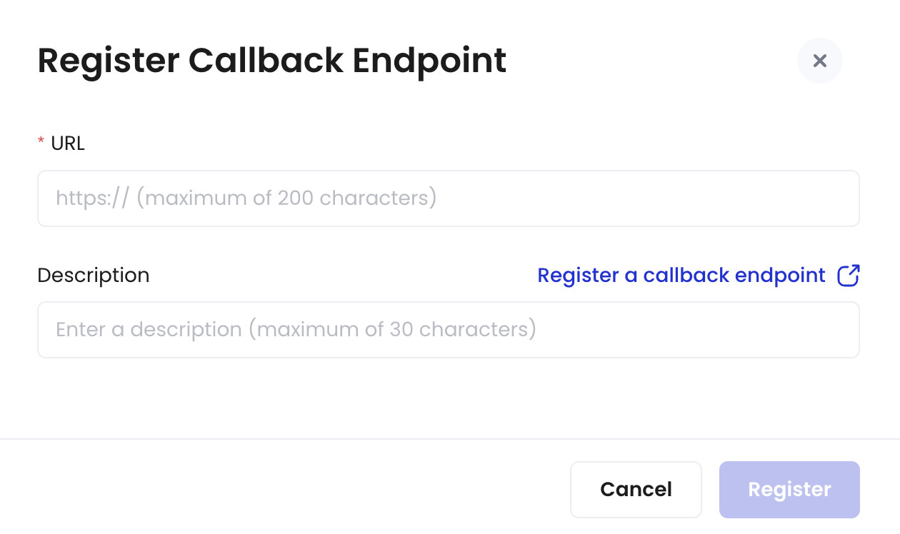Click the Callback Endpoint dropdown list and then click Register Callback Endpoint.